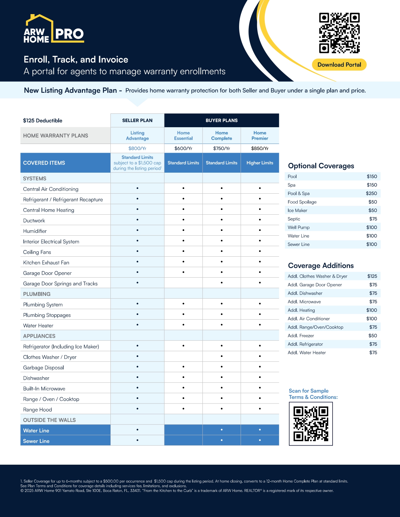 Our home warranty plan covers a home's major systems, plumbing and appliances with a low plan deductible. Providing this plan with your home sale gives prospective buyers the confidence they need to proceed especially if you home is older or simply has some dated systems.